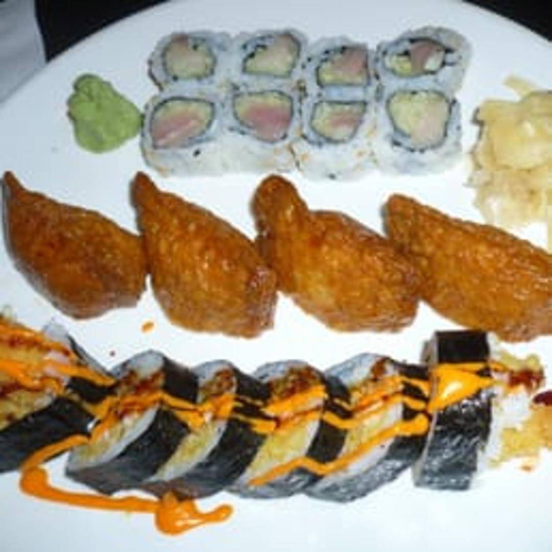 A sushi roll featuring crispy, golden-fried shrimp tempura, typically combined with avocado, cucumber, and sometimes cream cheese. Wrapped in seaweed and rice, often served with a drizzle of eel sauce and spicy mayonnaise.
