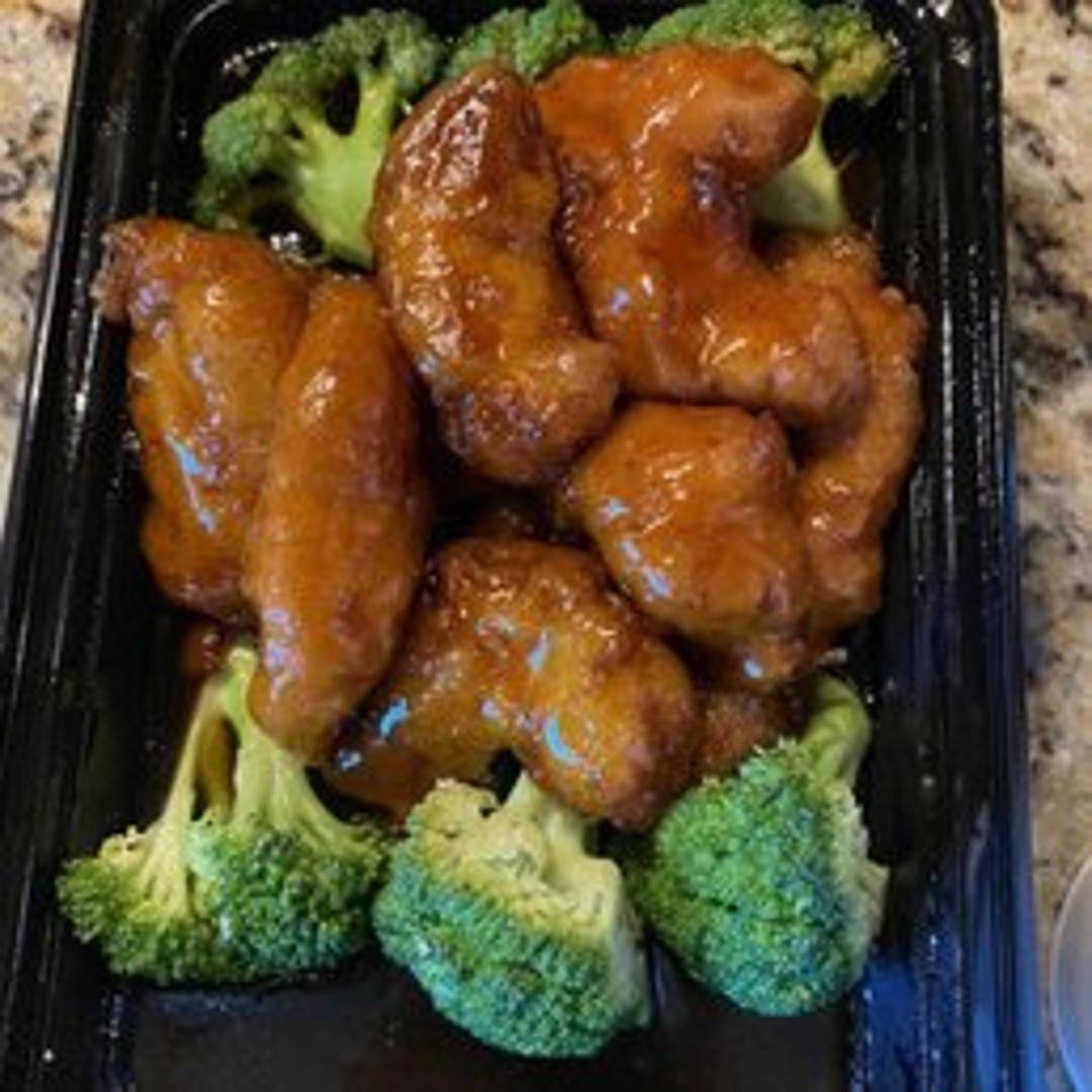 Crispy, lightly battered chicken tossed in a sweet and tangy, slightly spicy General Tso's sauce, served with steamed rice.