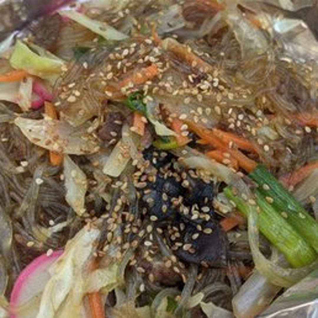 A classic Korean dish featuring chewy glass noodles (dangmyeon) stir-fried to perfection with an assortment of vibrant vegetables like carrots, spinach, mushrooms, and onions. Seasoned with a delicate balance of soy sauce, sesame oil, and garlic, this sweet and savory dish offers a delightful texture and rich umami flavor, making it a beloved staple.