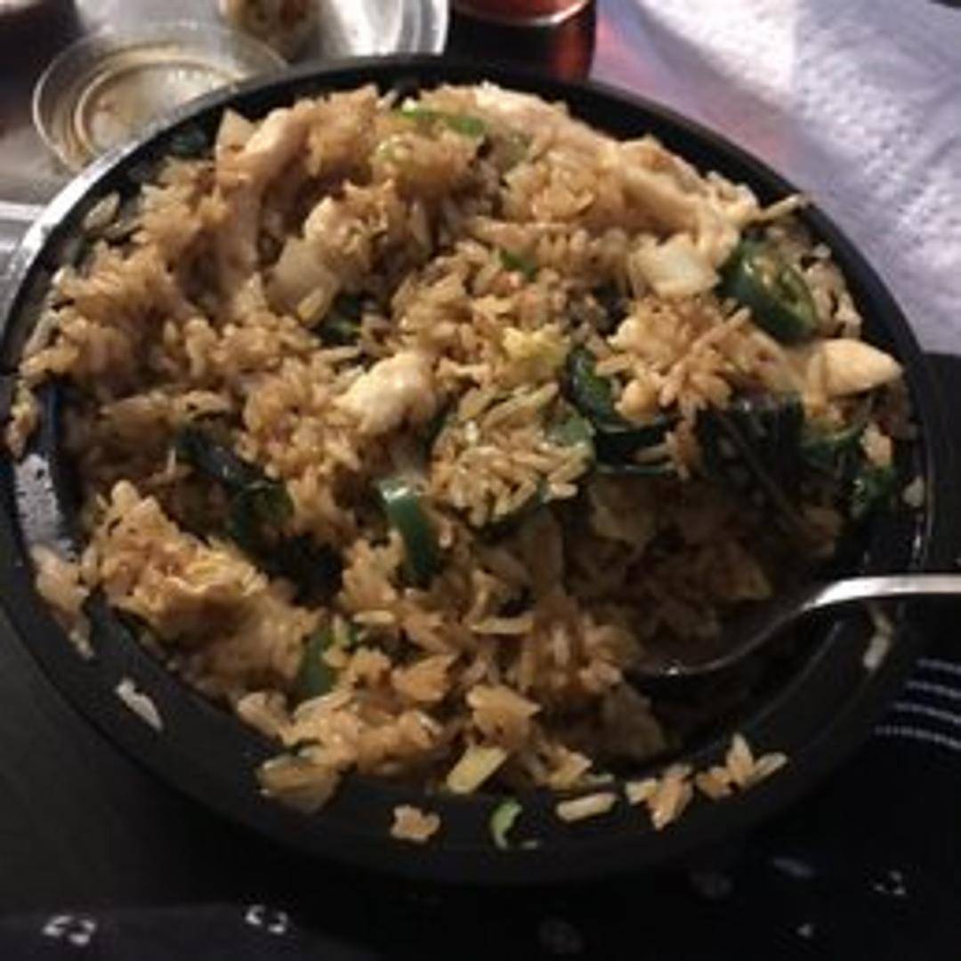 Fried rice with fragrant basil leaves, eggs, onions, and your choice of protein, stir-fried in a savory sauce.