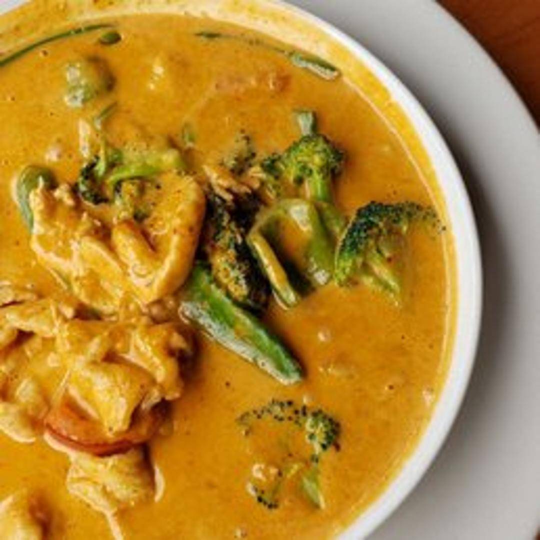 Rich and creamy peanut-based curry with your choice of protein, potatoes, carrots, and bell peppers.