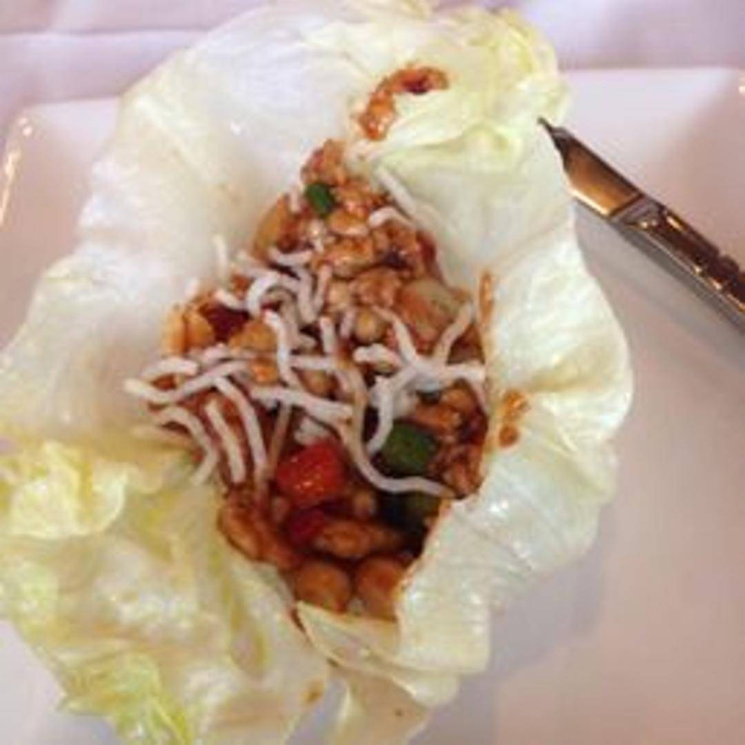 Minced chicken stir-fried with water chestnuts, mushrooms, and green onions, served with crisp lettuce cups for wrapping.