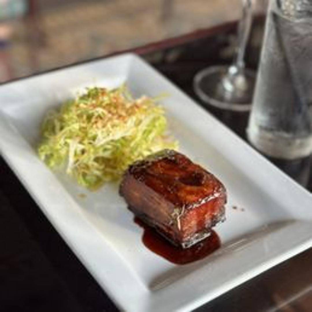 Slow-cooked pork belly, crispy skin and succulent meat, served with [mention accompanying sauce/side dishes if known, otherwise leave blank].