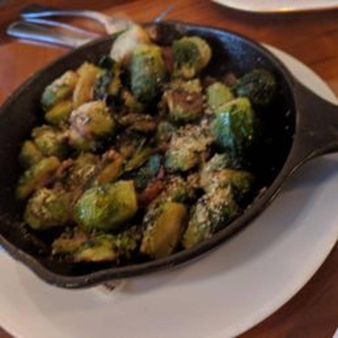 Roasted Brussels sprouts. Tender yet slightly crisp, these sprouts offer a savory, slightly nutty flavor with a hint of char. A classic vegetable side dish, cooked to perfection.