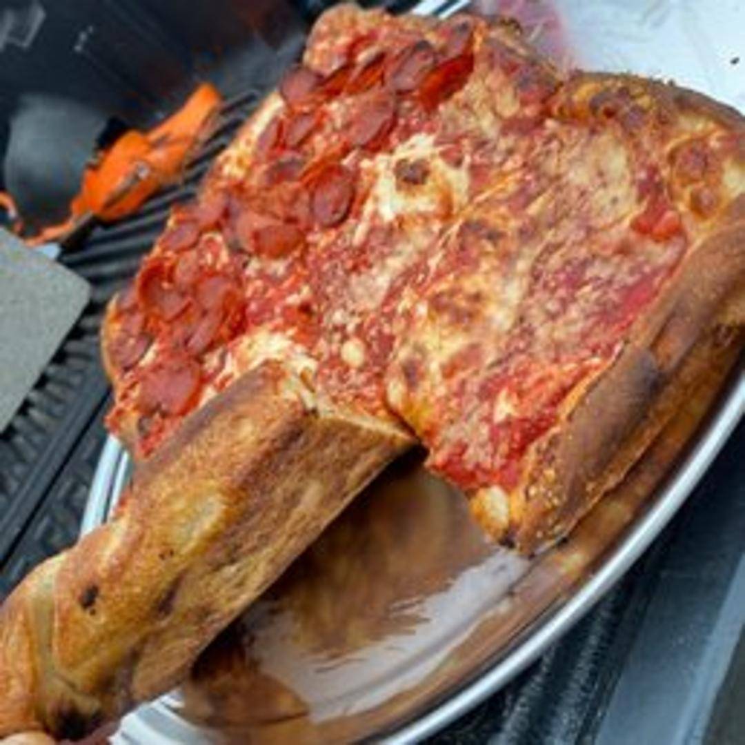 A thick, square-shaped pizza with a crispy, airy crust, topped with a rich tomato sauce, mozzarella cheese, and your choice of fresh ingredients. A satisfying and flavorful pizza experience.