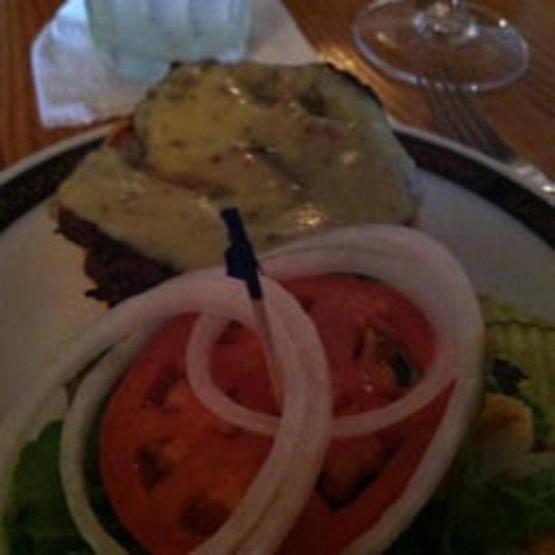 Grilled burger seasoned with Cajun spices, topped with pepper jack cheese, lettuce, tomato, and Cajun mayo on a toasted bun.