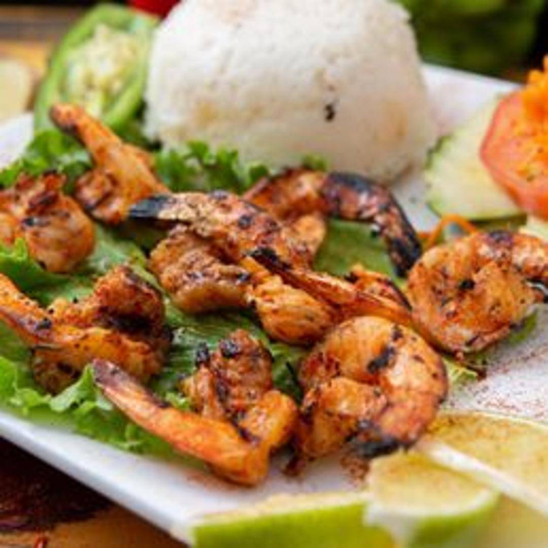 A refreshing Vietnamese noodle salad featuring grilled shrimp served atop a bed of cold vermicelli noodles. Includes a variety of fresh vegetables such as lettuce, cucumbers, carrots, and bean sprouts. Drizzled with a flavorful nuoc cham (fish sauce-based) dressing and topped with crushed peanuts.