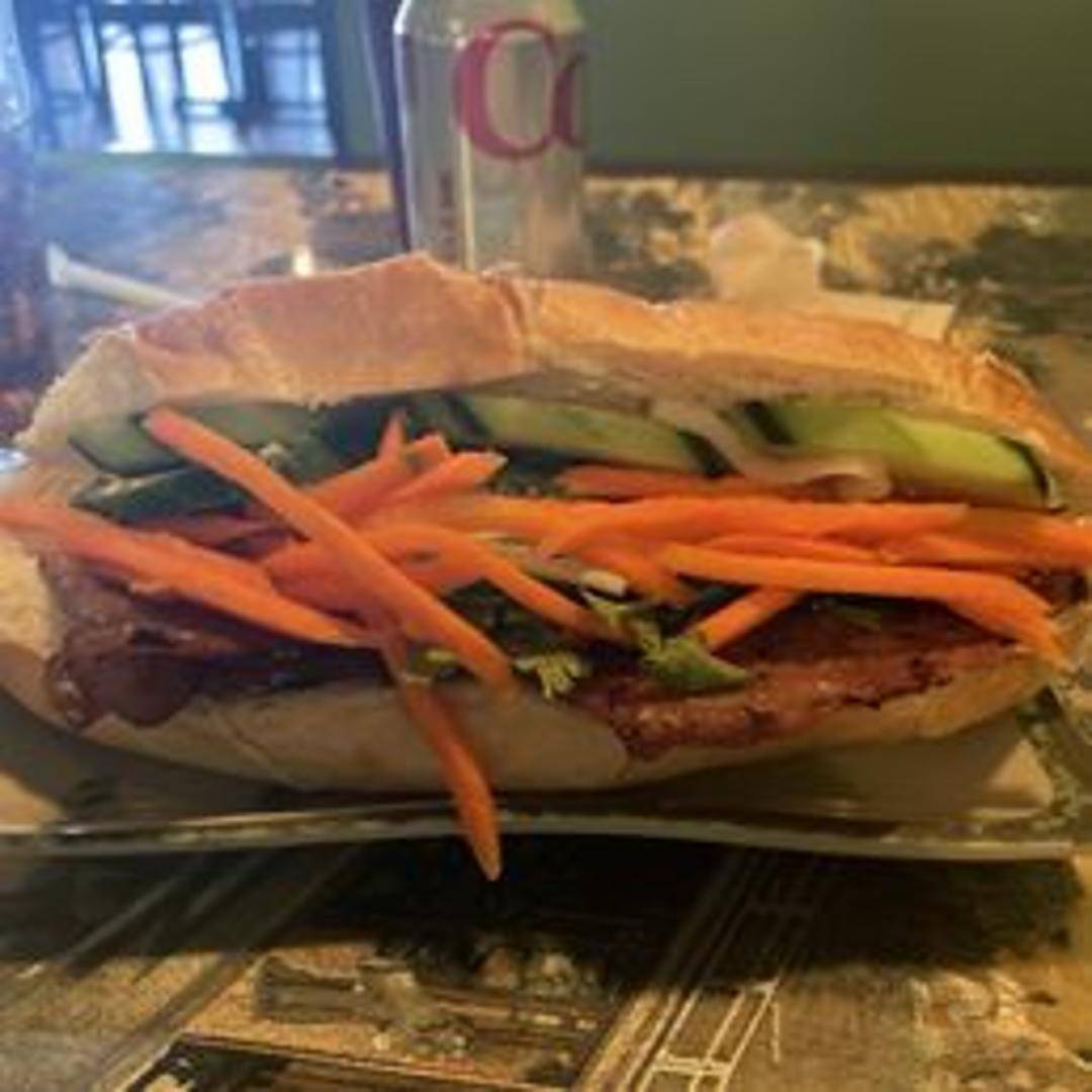 A crusty baguette filled with your choice of protein (often grilled pork, chicken, or tofu), pate, mayonnaise, pickled carrots and daikon radish, cucumber, cilantro, and jalapenos. A symphony of textures and flavors: savory, sweet, tangy, and spicy.
