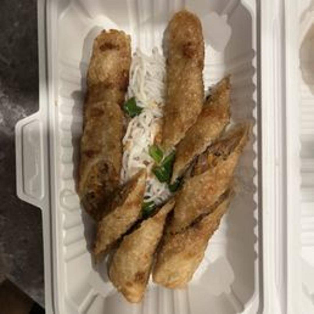 Crispy, deep-fried rolls filled with a savory mixture of ground pork, vegetables (like carrots, cabbage, and mushrooms), and rice noodles. Served with a side of sweet chili dipping sauce.