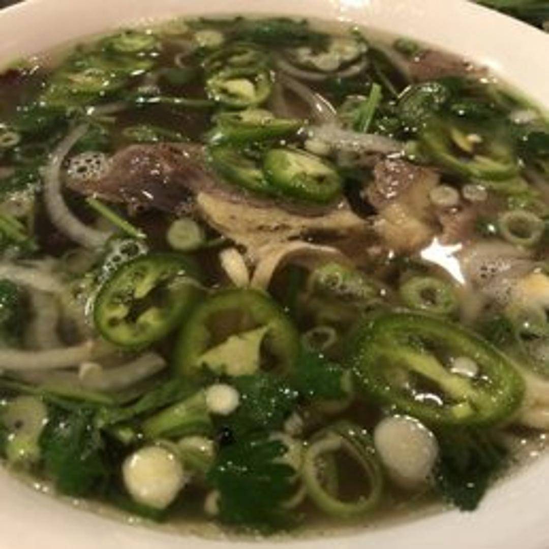 A hearty and flavorful noodle soup, a signature offering that combines a rich, aromatic broth with a generous assortment of premium ingredients. This satisfying bowl typically features a medley of meats such as thinly sliced beef, tender beef meatballs, and possibly other cuts, served over delicate rice noodles. Garnished with fresh herbs, crisp bean sprouts, and lime for a vibrant and authentic taste experience.