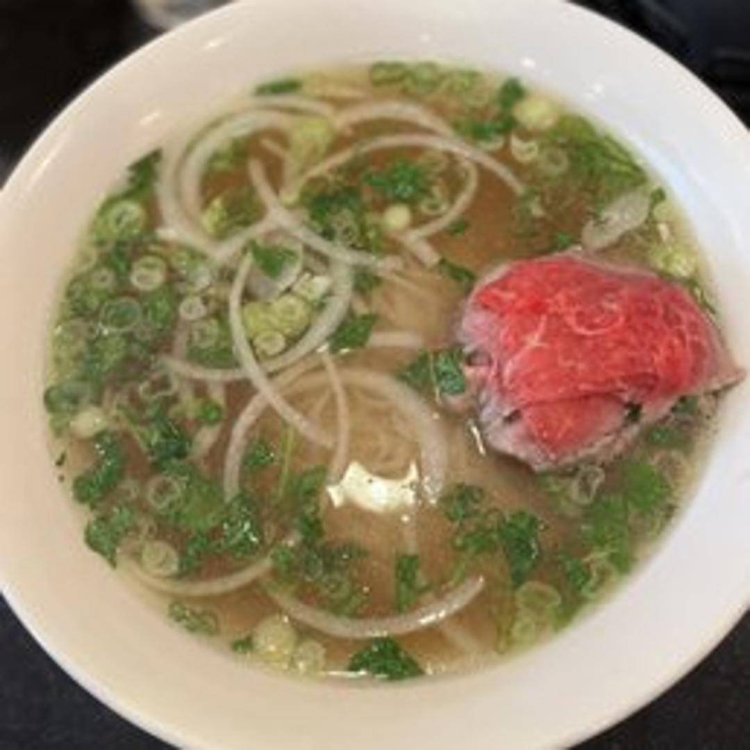 Savor the signature taste of Vietnam with our Rare Steak Pho Soup. This iconic dish features a meticulously slow-cooked, aromatic beef broth poured over thin slices of rare steak that cook to perfection upon contact with the hot liquid, alongside tender rice noodles. Served with a generous plate of fresh basil, bean sprouts, lime, and jalapeños, it's a rich and authentic culinary journey at Pho Factory.