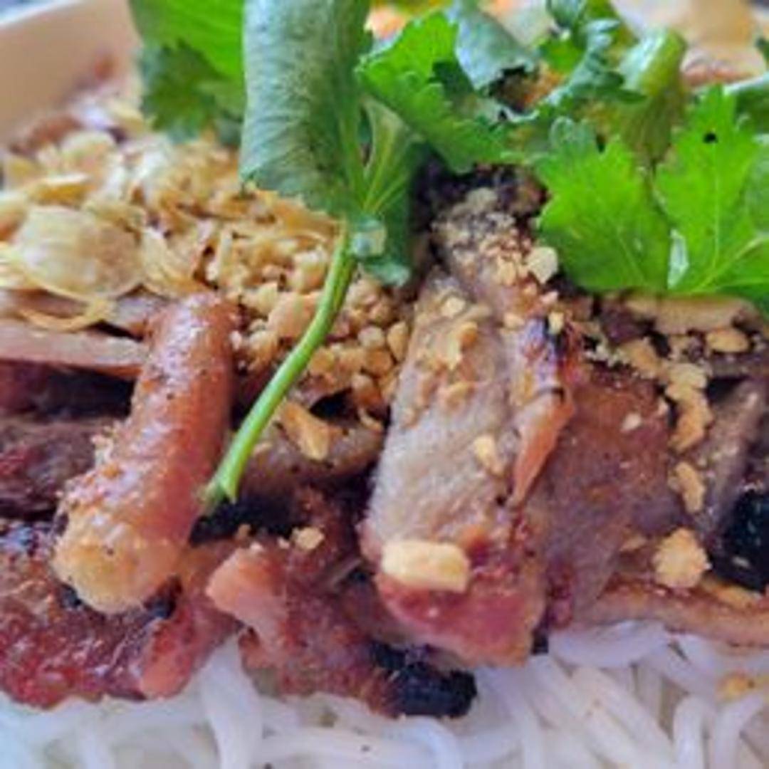 Crispy and golden-brown Vietnamese egg rolls filled with a savory mixture of ground pork, shrimp, carrots, glass noodles, and mushrooms. Each egg roll is carefully wrapped in thin rice paper and deep-fried to perfection. Served with a side of nuoc cham dipping sauce for a delicious appetizer or side dish.