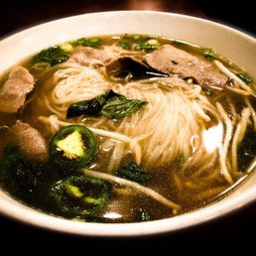 Traditional Vietnamese noodle soup with rare sliced steak and well-done brisket in a rich, fragrant broth. Served with rice noodles, onions, cilantro, and a side of bean sprouts, basil, jalapenos, and lime.