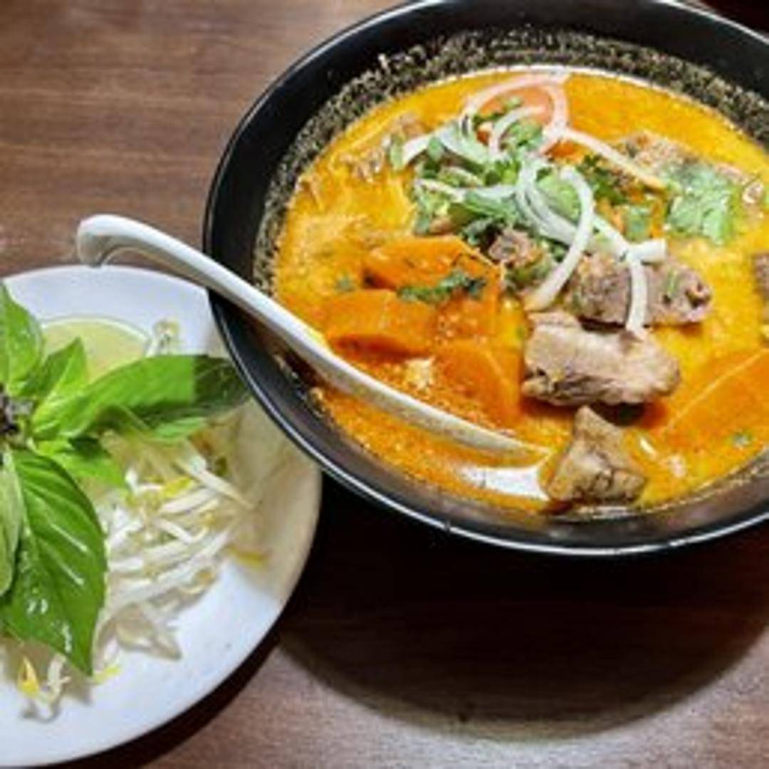 A hearty and flavorful beef stew simmered in a rich broth with carrots, potatoes, and aromatic spices. Served with bread or rice noodles.