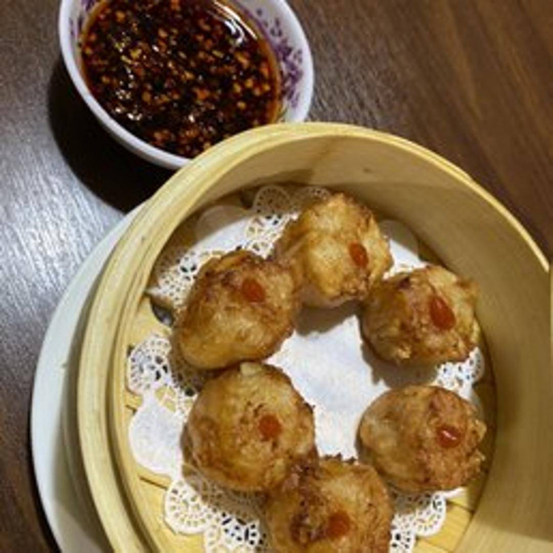 Steamed or pan-fried dumplings filled with a savory mixture of ground pork and shrimp. Served with a soy sauce-based dipping sauce.