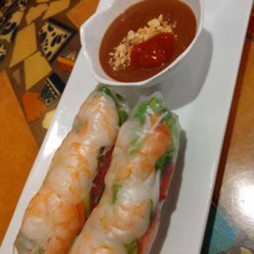 Fresh spring rolls filled with vermicelli noodles, shrimp, pork, lettuce, bean sprouts, and mint. Served with a peanut dipping sauce. A light and refreshing appetizer.