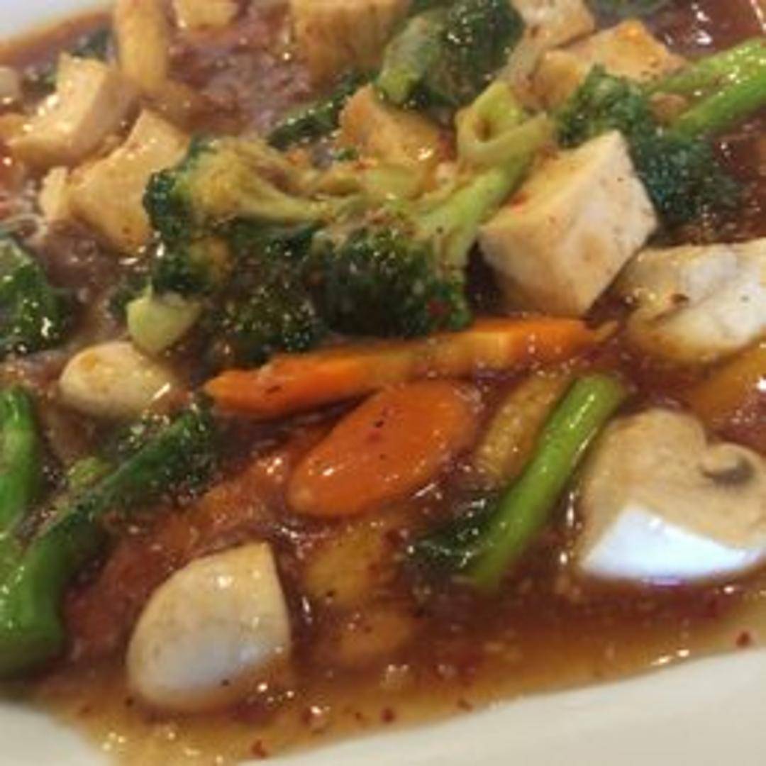 Wide rice noodles topped with a thick, savory gravy made with Chinese broccoli and your choice of protein (chicken, pork, beef, or tofu).
