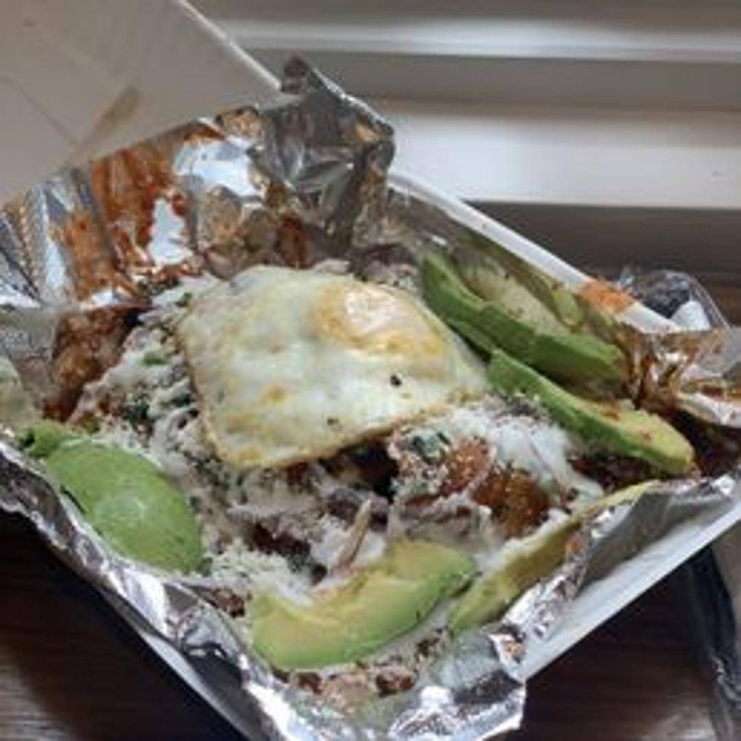 Patatas bravas-inspired dish. Crispy potatoes smothered in a smoky, slightly spicy brava sauce. Garnished with a drizzle of aioli for a creamy, garlicky finish.