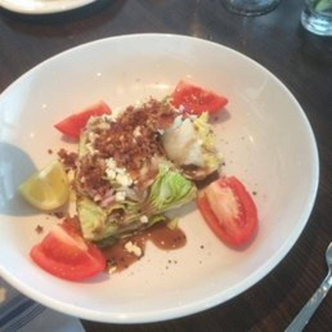A crisp wedge of iceberg lettuce, topped with creamy blue cheese dressing, crumbled bacon, diced tomatoes, and sometimes red onion. A classic and refreshing salad option.