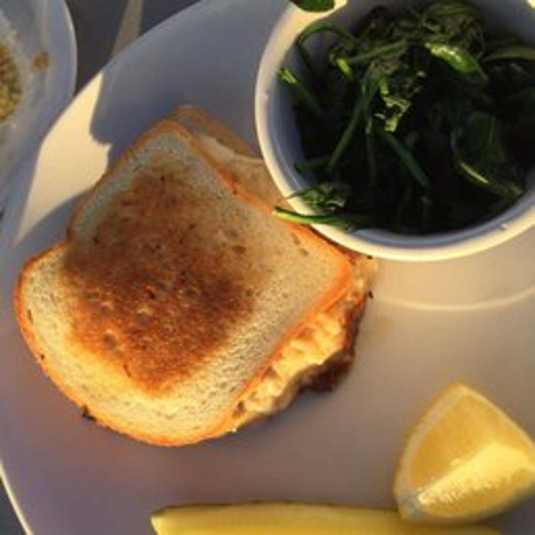 A generous portion of jumbo lump crab meat blended with creamy cheeses and seasonings, broiled on toasted sourdough bread. Served with your choice of side.