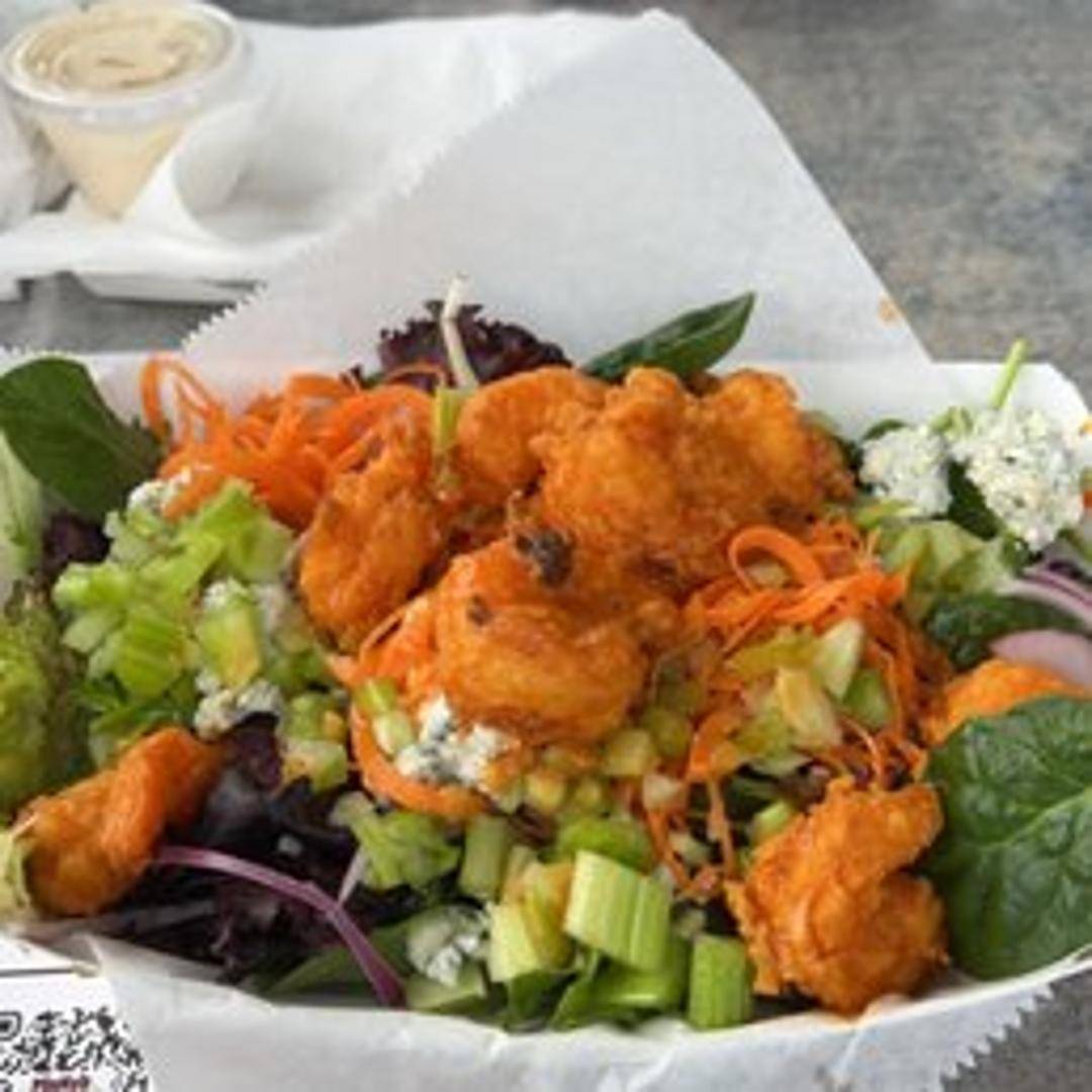 Spice up your palate with these vibrant tacos! Succulent, crispy fried shrimp are tossed in our signature zesty buffalo sauce, then tucked into warm flour tortillas. Each taco is generously topped with cool, shredded cabbage, diced tomatoes, and a refreshing drizzle of creamy ranch dressing to balance the heat.