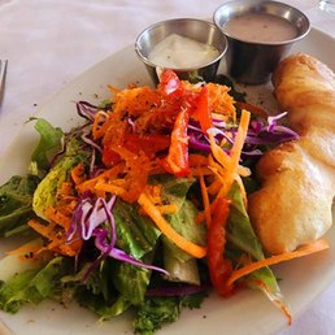 A refreshing mix of fresh greens, tomatoes, cucumbers, carrots, and your choice of dressing.
