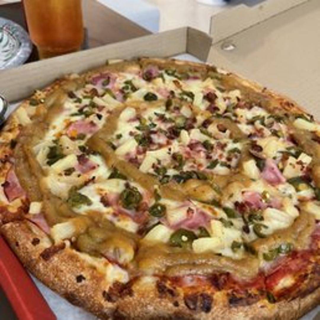 A tropical heatwave on a pizza! We start with our classic sweet tomato sauce, then pile on generous portions of ham, pineapple, jalapeños, and a blend of mozzarella and provolone cheeses. Baked to perfection for a sweet, savory, and spicy sensation.