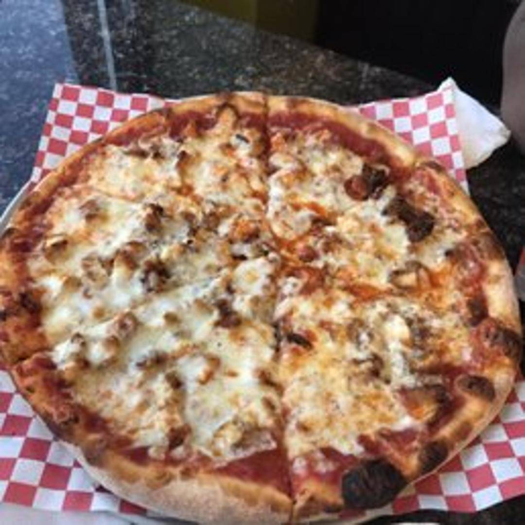 Our signature pizza crust topped with grilled chicken tossed in buffalo sauce, mozzarella cheese, and your choice of blue cheese or ranch dressing drizzle.