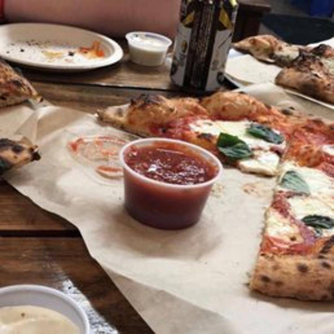 A classic Neapolitan pizza made with simple, fresh ingredients: San Marzano tomatoes, mozzarella cheese, fresh basil, salt, and extra-virgin olive oil. A celebration of Italian flavors.