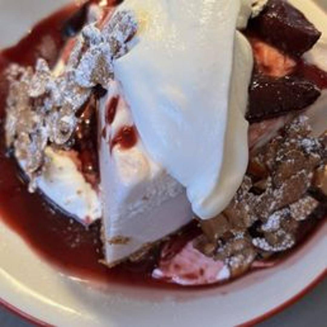 A unique dessert featuring a creamy gelato made with roasted honeynut squash, encased in a crisp pie crust, offering a sweet and subtly savory flavor combination.