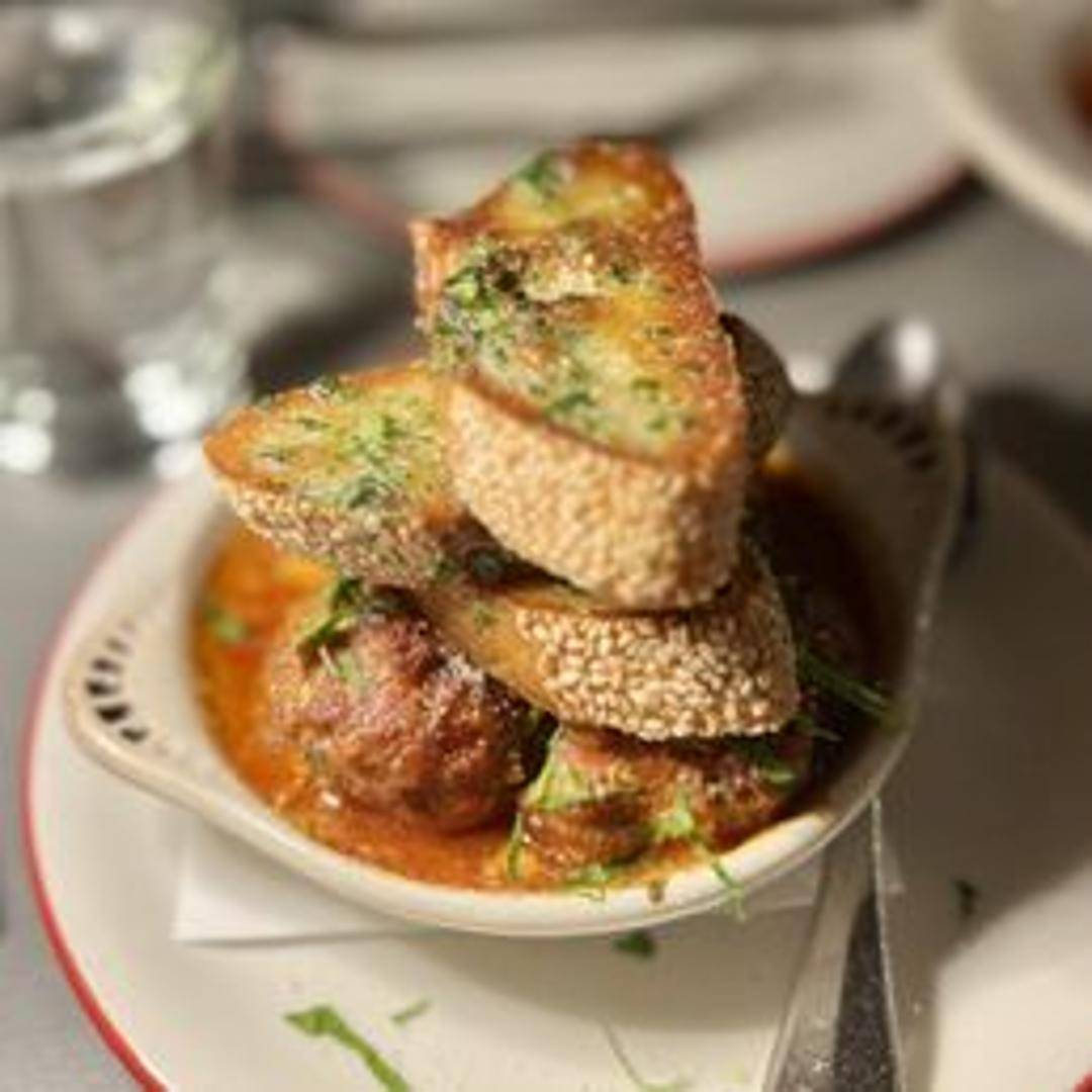 Large, flavorful meatball, often served in a light tomato sauce and topped with grated cheese. Made with ground beef and pork, spices, and breadcrumbs.