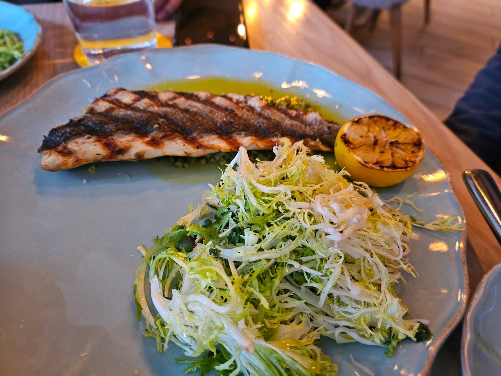 A fresh and vibrant selection, our Grilled Fish with Salad offers a delicate fillet of seasonal white fish, expertly grilled to flaky perfection and seasoned with Mediterranean herbs and a squeeze of fresh lemon. It's elegantly presented alongside a crisp, colorful salad featuring mixed greens, cherry tomatoes, cucumbers, and a light, zesty lemon-herb vinaigrette.