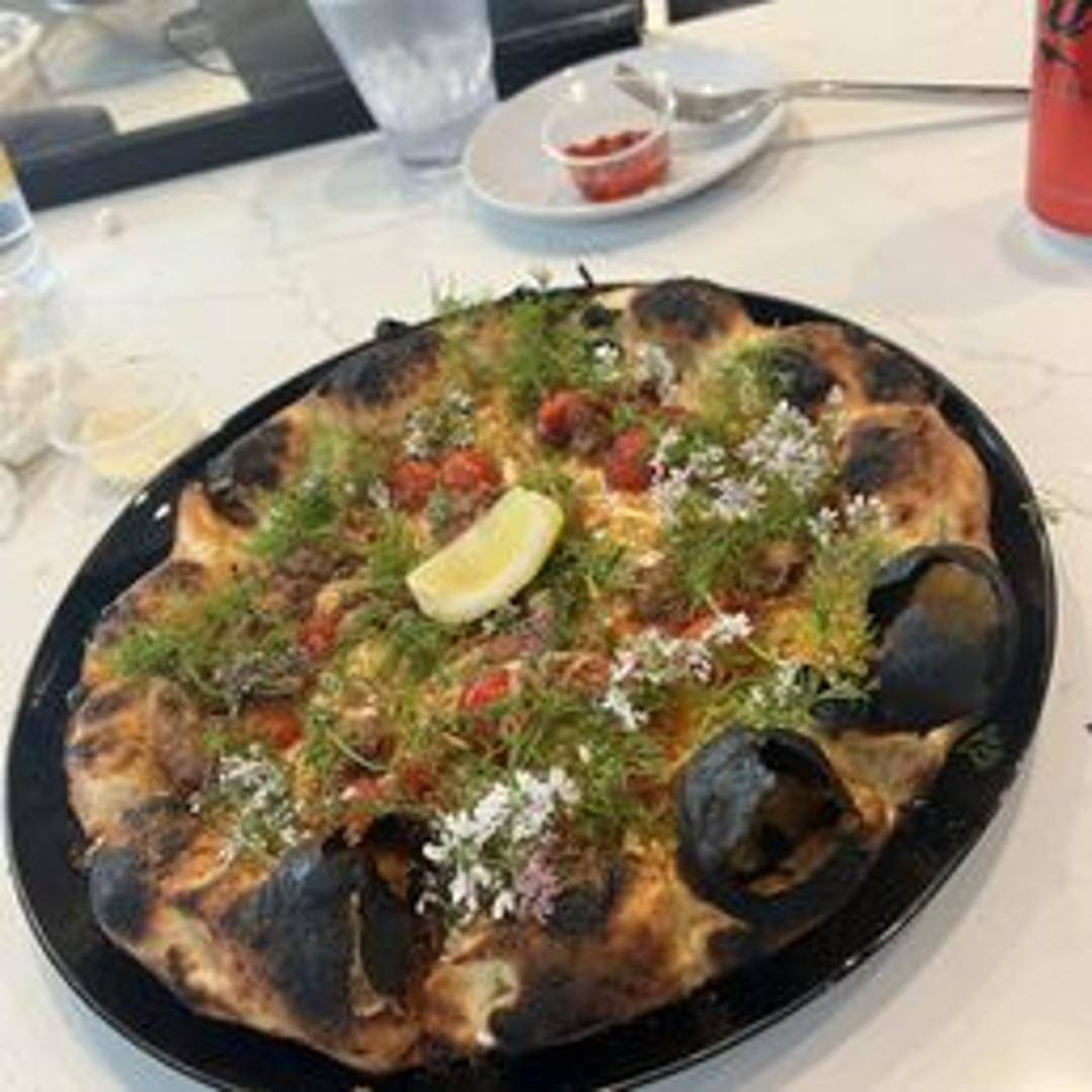 Pizza featuring tender lamb seasoned with Mala spices, known for their numbing and spicy sensation. Likely complemented by mozzarella cheese and other compatible toppings.