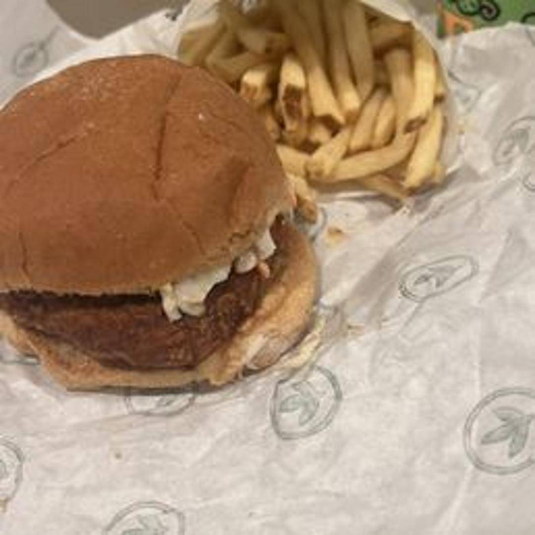 Our signature crispy fried chick'n fillet, topped with lettuce, tomato, pickles, and our house-made vegan mayo on a toasted brioche bun. A classic comfort food made entirely plant-based.