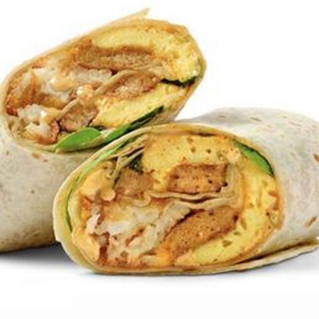 A warm tortilla filled with plant-based eggs, potatoes, cheese, and your choice of savory toppings.
