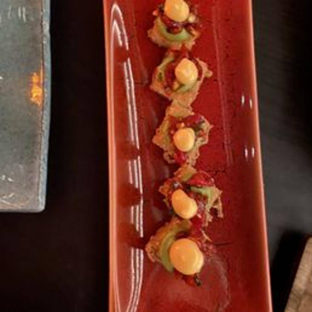 Spicy 'tuna', avocado, crispy rice, and citrus mayo.