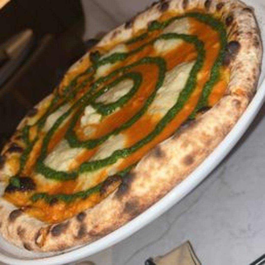 A plant-based pizza featuring a creamy, tomato-based vodka sauce, vegan mozzarella, and fresh basil. Expect a rich, tangy flavor with a smooth, velvety texture. A classic pizza with a sophisticated twist.