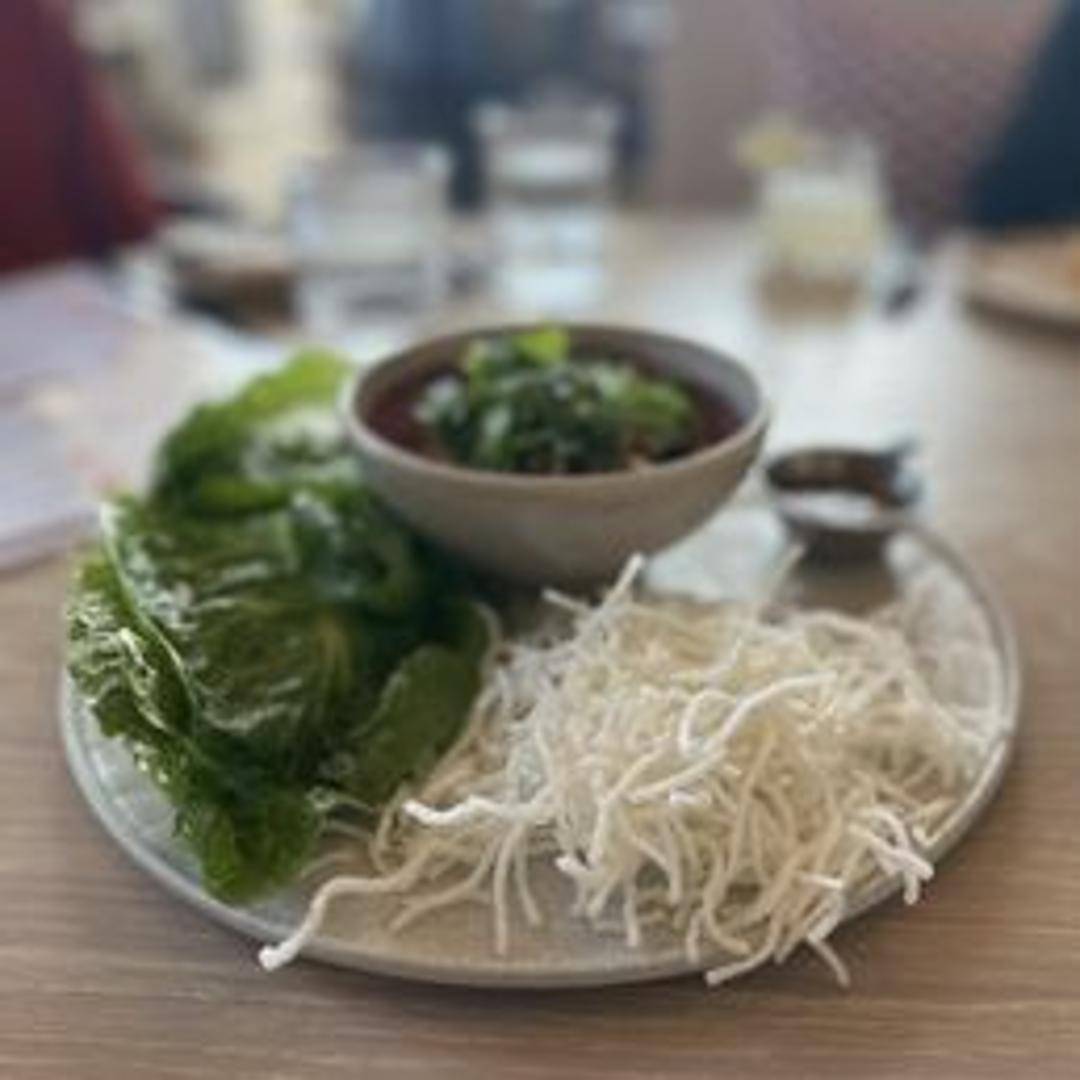 Crispy noodles, peanuts, shredded carrots, Thai basil, spicy peanut sauce, lettuce cups. A customizable and flavorful appetizer.