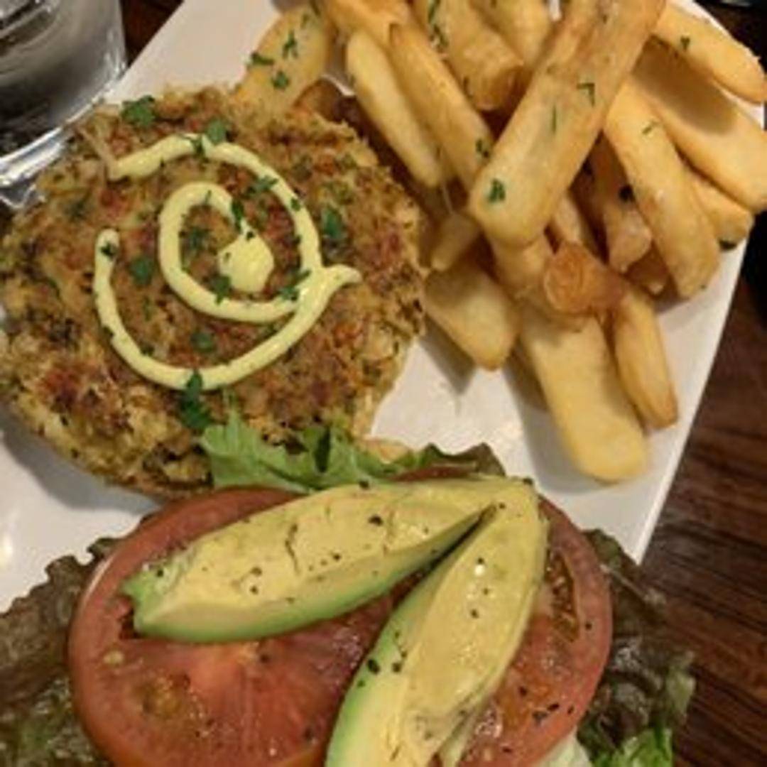 Two pan-seared crab cakes, packed with sweet lump crab meat and seasoned with herbs and spices. Served with a zesty remoulade sauce and a side of mixed greens.