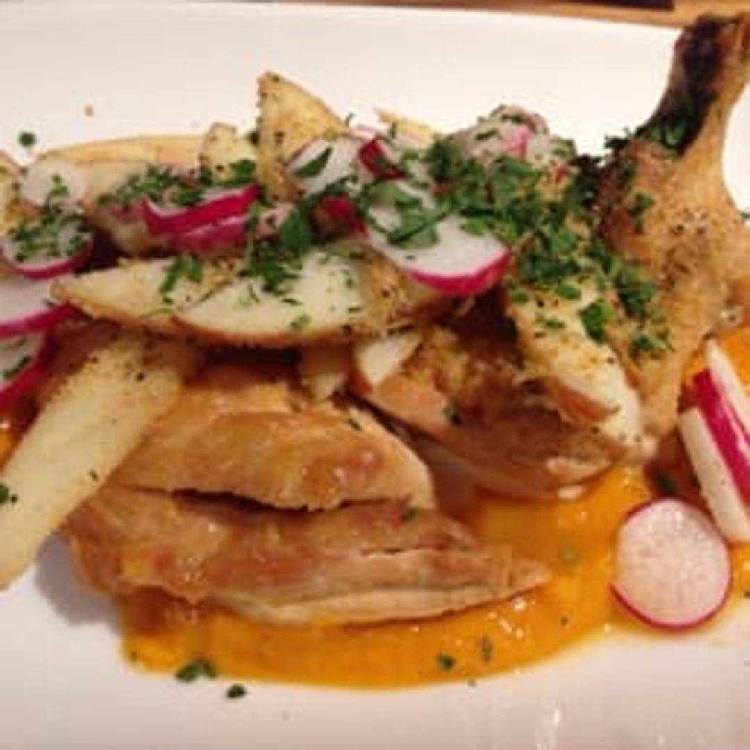 Roasted free-range chicken, expertly seasoned and cooked to perfection. Served with seasonal vegetables and a savory pan jus.