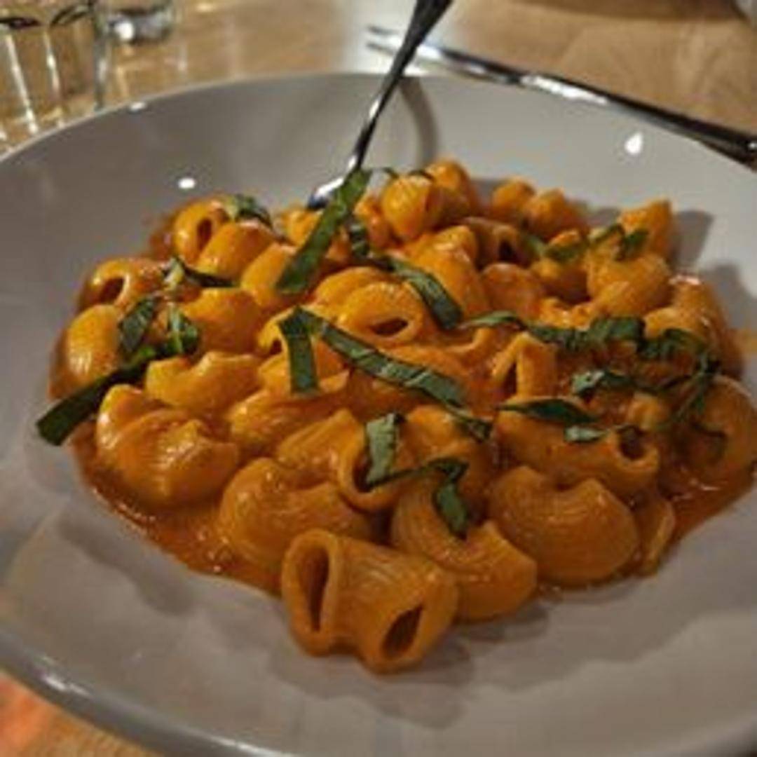 Tube-shaped pasta tossed in a creamy tomato sauce made with vodka, pancetta or prosciutto, and Parmesan cheese.