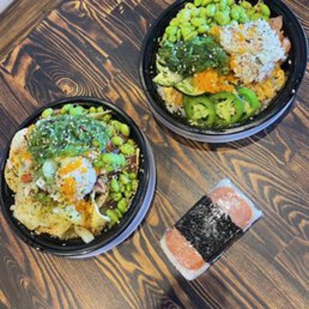 A popular Hawaiian snack featuring a slice of grilled Spam glazed with teriyaki sauce, placed atop a block of sushi rice and wrapped with a strip of nori seaweed.