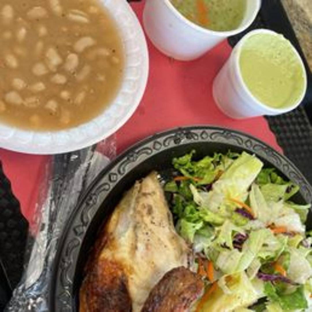 A combination meal featuring Pollo Inka Express's signature rotisserie chicken with your choice of sides.