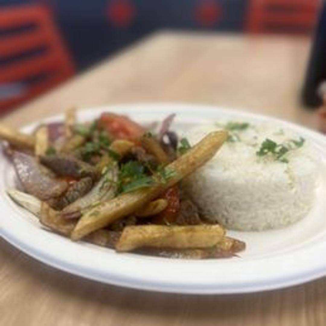A classic Peruvian stir-fry. Tender strips of beef, onions, tomatoes, and french fries sautéed in soy sauce and spices. Served with rice.