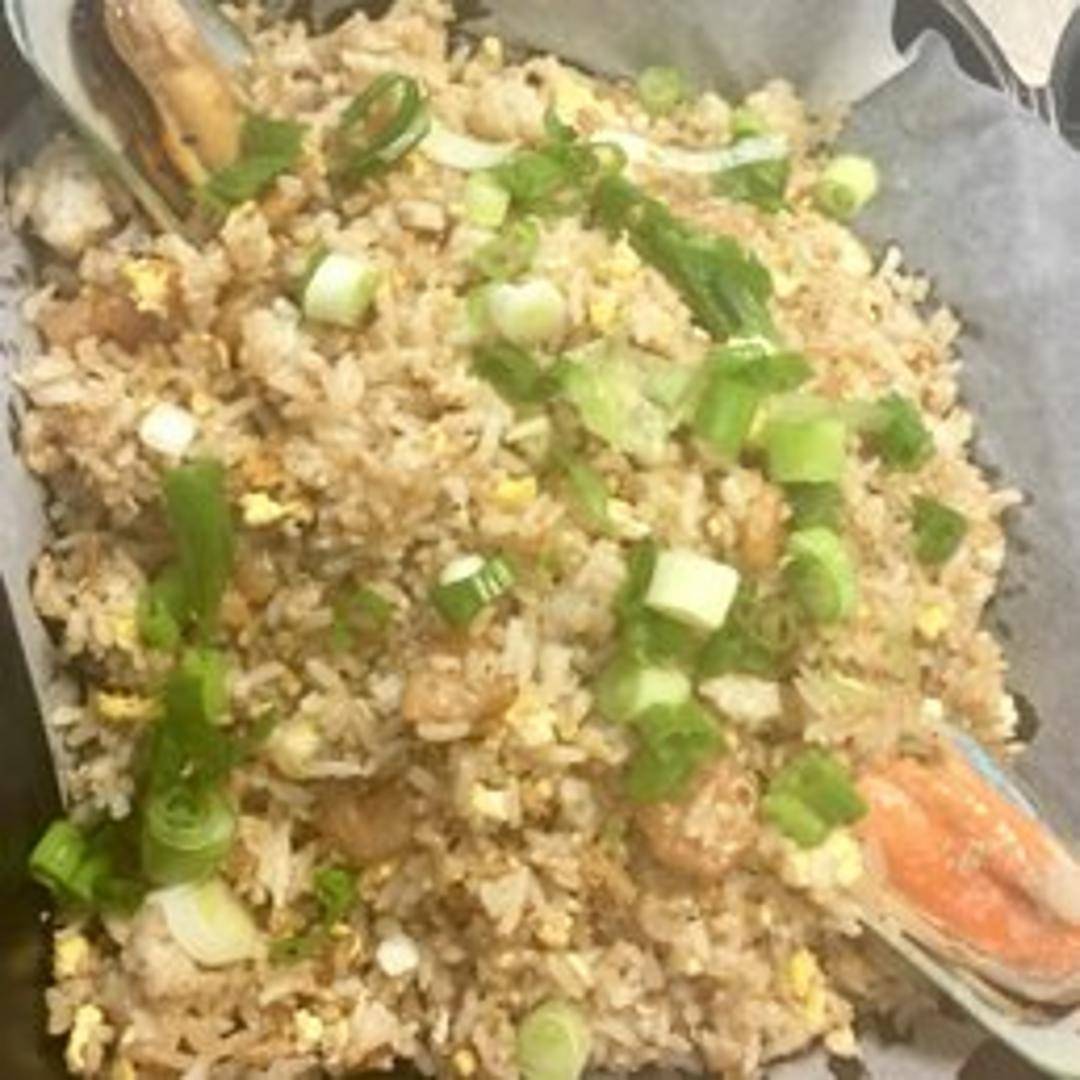 Peruvian-Chinese fried rice. A savory dish featuring rice stir-fried with soy sauce, vegetables, eggs, and your choice of protein.