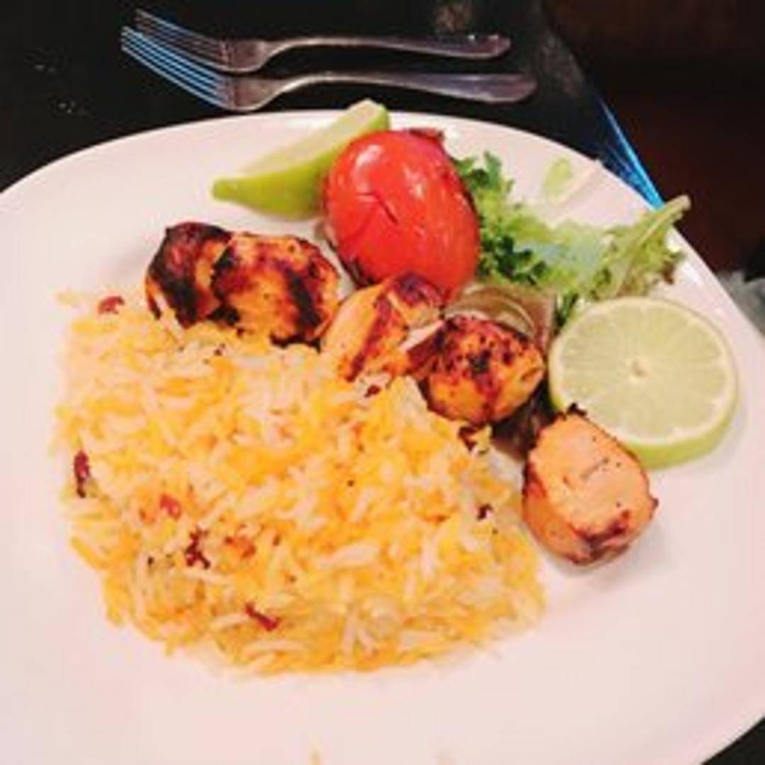 Deliciously marinated chicken, skewered and grilled. Served with a side of fluffy basmati rice, grilled vegetables, and your choice of sauce.