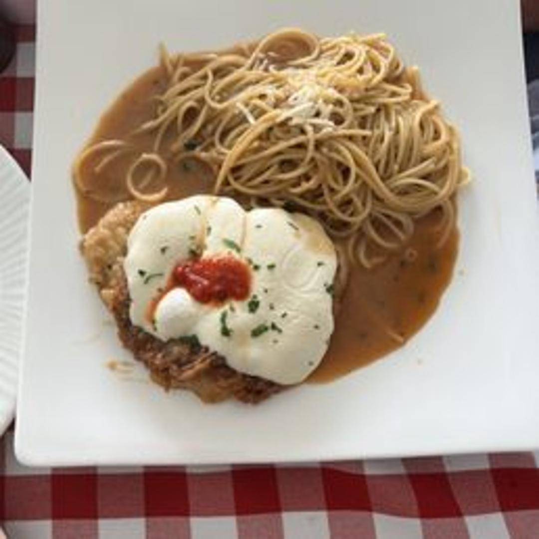 Chicken cutlets layered with prosciutto, eggplant, and mozzarella cheese, baked in a marinara sauce.