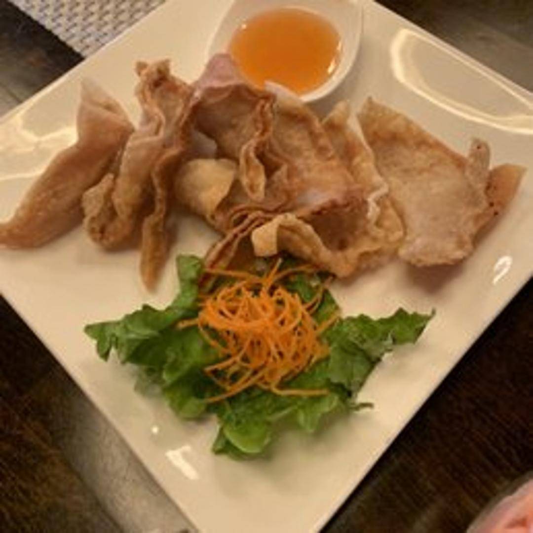 Crispy, deep-fried wontons filled with a savory mixture of ground pork and spices. Served with a sweet and sour dipping sauce.
