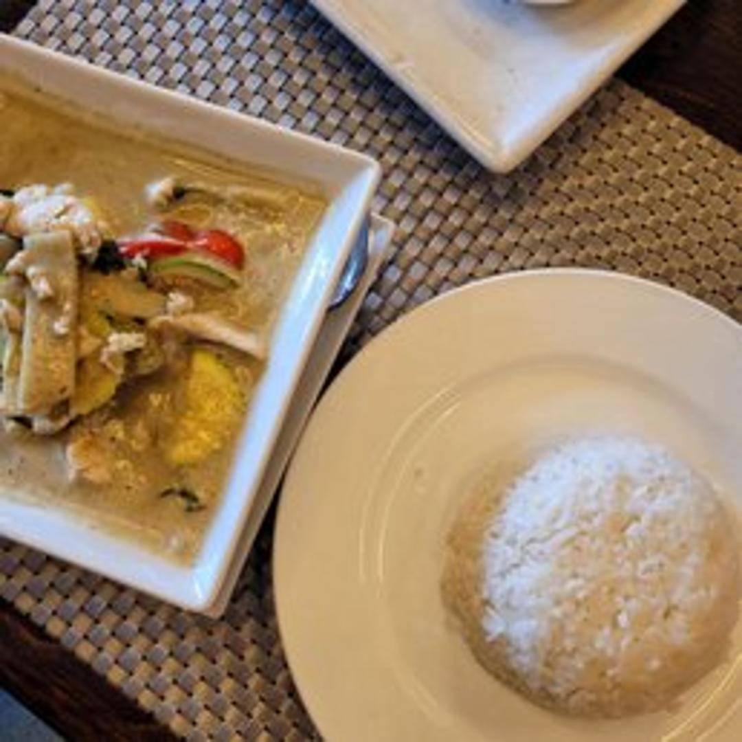 A vibrant and aromatic Thai curry prepared with green curry paste, coconut milk, bamboo shoots, bell peppers, Thai basil, and your choice of protein. Known for its spicy and slightly sweet flavor profile.