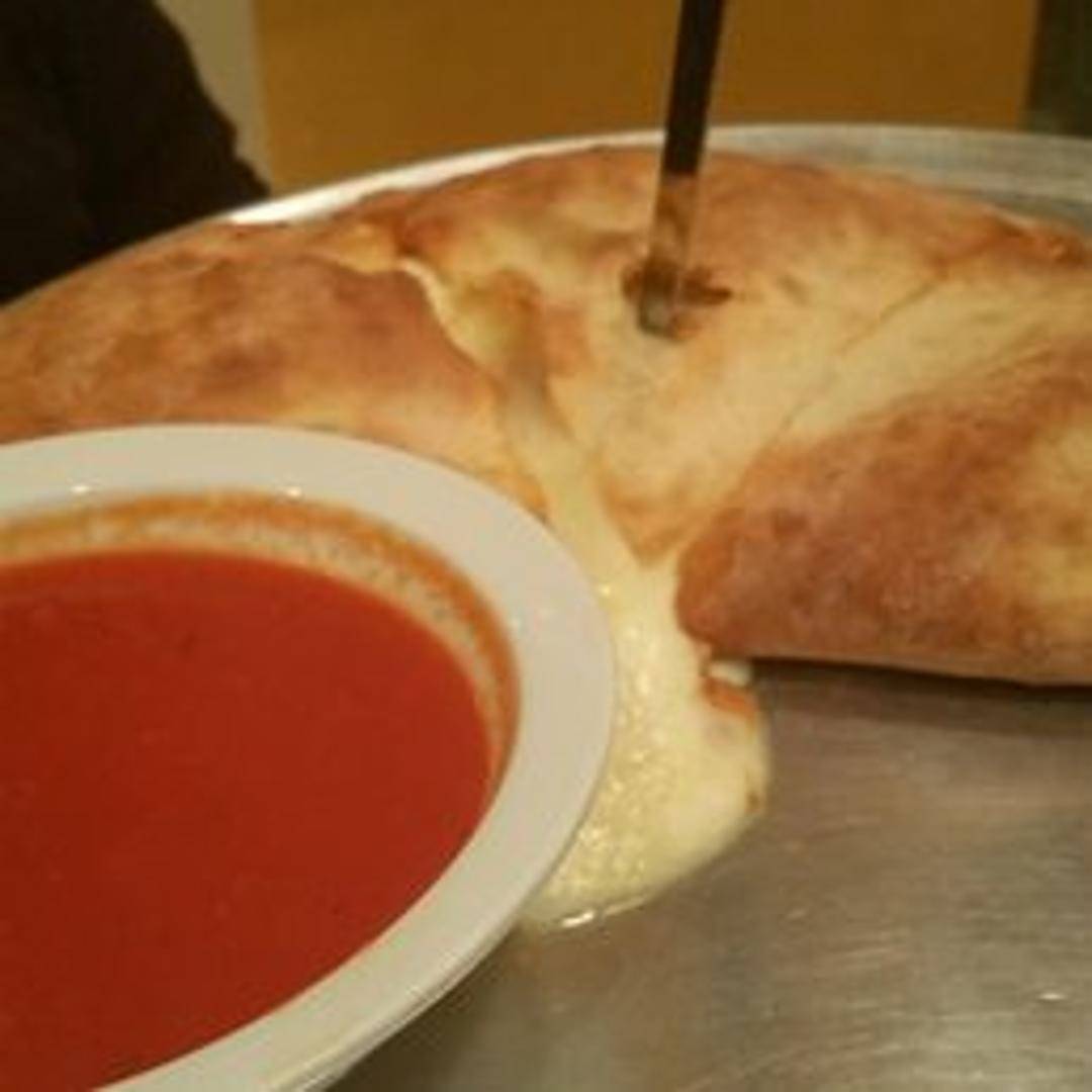 Indulge in Portofino's hearty Calzone, a golden-baked, folded pizza dough crust expertly filled with a delicious blend of creamy ricotta and melted mozzarella cheeses. This savory pastry pocket is crafted to perfection, offering a warm, satisfying Italian experience, typically served with a side of Portofino's signature marinara sauce for dipping.